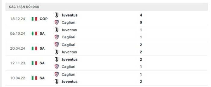 Bảng bóng đá trận đấu Cagliari vs Juventus