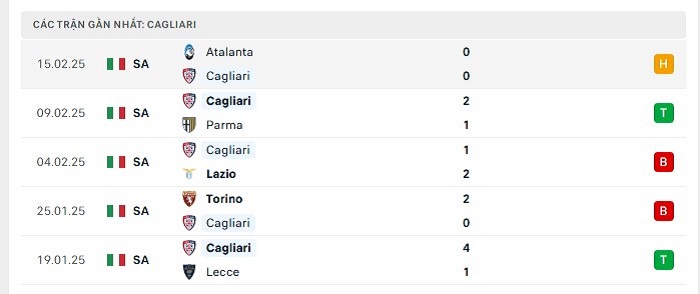 - Phong độ Cagliari