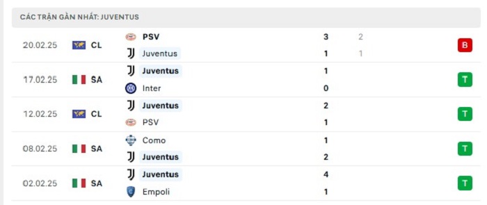 - Phong độ Juventus