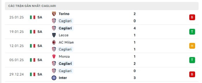 • Phong độ Cagliari