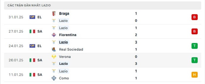 • Phong độ Lazio