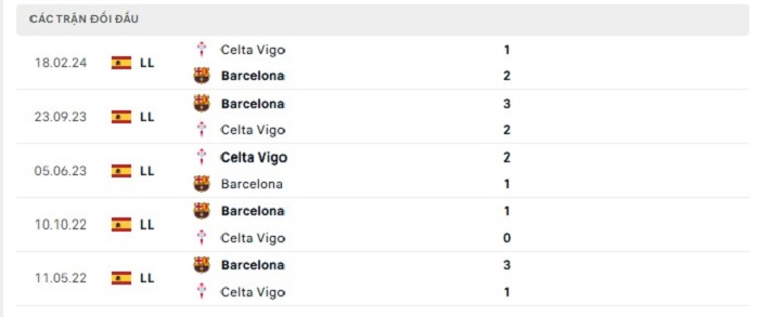 Bảng bóng đá trận đấu Celta Vigo vs Barcelona