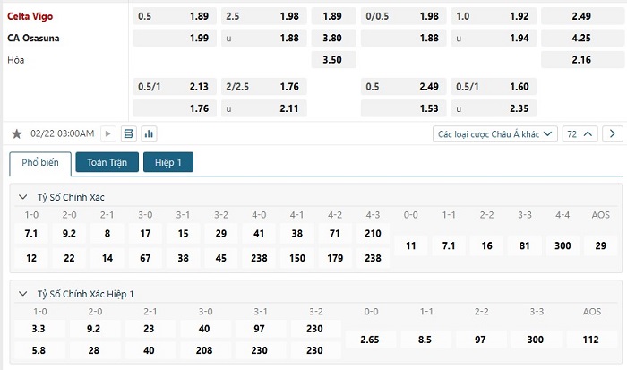Celta Vigo hiện đang là cái tên được sự đánh giá cao so với Osasuna ở trận sắp tới, tuy nhiên đây cũng chỉ là mức kèo chấp đánh giá về khả năng sân nhà của họ trước đối thủ này. Thực tế ở La Liga mùa này rõ ràng phong độ của Celta Vigo không tốt hơn so với Osasuna cũng có thể thấy được những khó khăn của họ, chưa kể tới thành tích trong quá khứ với đội khách họ vẫn có được những kết quả khả quan trước đội chủ nhà, vì vậy mà với kèo châu Á hiện tại thì Osasuna cũng là lựa chọn đáng tin.