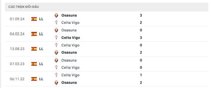Bảng bóng đá trận đấu Celta Vigo vs Osasuna