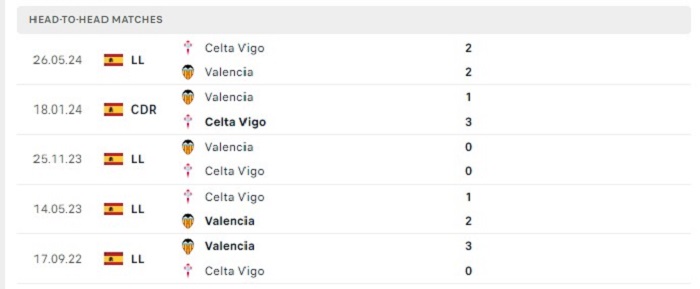 Phong độ gần đây Celta Vigo vs Valencia