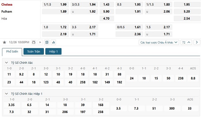 So với Fulham thì thực lực của Chelsea vẫn được đánh giá cao hơn nhiều, chính bởi vậy mà việc đội chủ nhà đang được đánh giá cao trên phương diện của kèo châu Á cũng không phải là điều quá bất ngờ. Tuy nhiên ở mùa giải năm nay với Chelsea phong độ của họ trên sân nhà lại không hề tốt trong khi với Fulham họ vẫn thể hiện một bộ mặt thi đấu khá khó chịu của mình, chính bởi vậy mà với mốc kèo châu Á đang được niêm yết khá cao hiện tại đội khách sẽ là phương án lựa chọn không hề tồi.