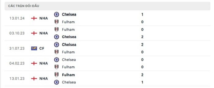 Bảng bóng đá trận đấu Chelsea vs Fulham