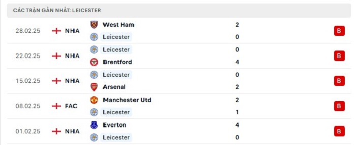 • Phong độ Leicester City