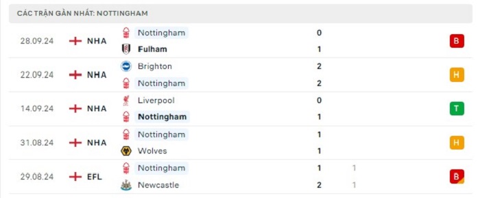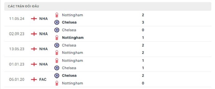 Phong độ gần đây Chelsea vs Nottingham