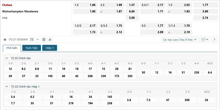 Soi kèo châu Á, kèo chấp Chelsea vs Wolves