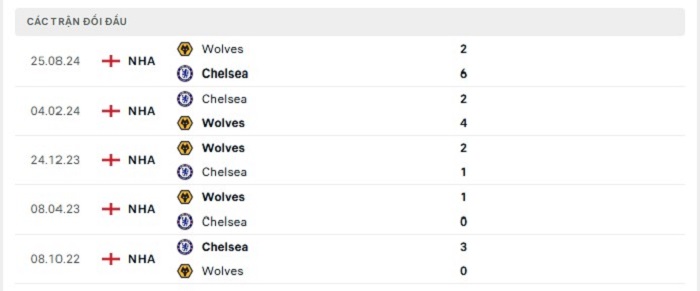 Bảng bóng đá trận đấu Chelsea vs Wolves