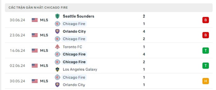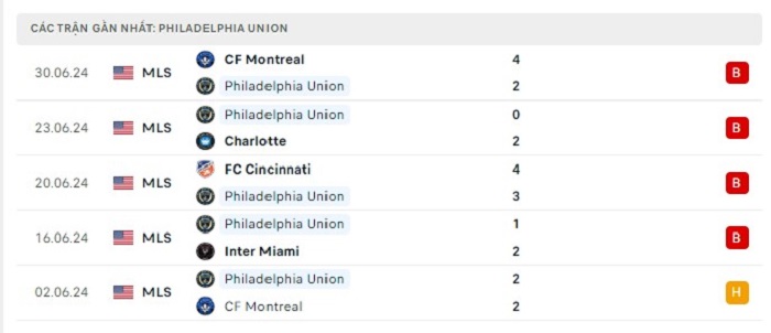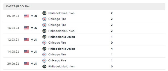 Phong độ gần đây Chicago Fire vs Philadelphia Union