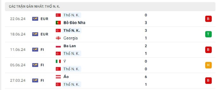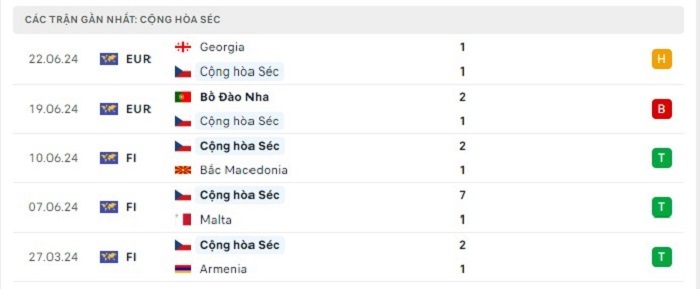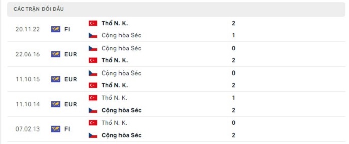 Phong độ gần đây Cộng hoà Séc vs Thổ Nhĩ Kỳ