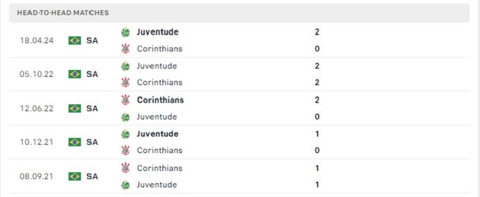 Như đã nói thì cả Corinthians và Juventude đều không thể hiện được khả năng ghi bàn tốt ở giải đấu, mặc dù vậy hàng thủ của hai đội cũng không phải là quá tệ khiến các trận đấu có sự góp mặt của hai đội có tỷ lệ ghi bàn trong trận đấu là không cao. Bên cạnh đó những lần gặp nhau gần đây của hai đội tỷ số trong trận đấu ghi được cũng tương đối thấp, vì vậy mà khó có thể kỳ vọng vào một trận đấu bùng nổ về mặt tỷ số của cả hai đội.