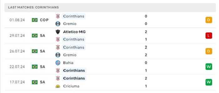 - Phong độ Corinthians