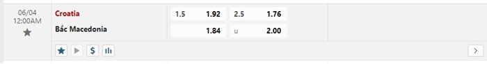 Bảng tỷ lệ kèo bóng đá trận đấu Croatia vs Bắc Macedonia
