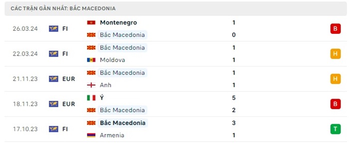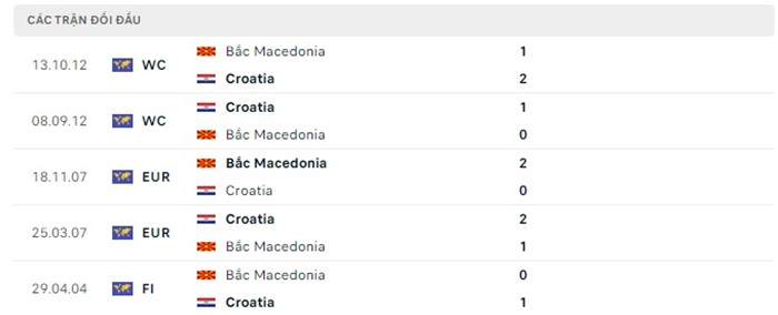 Phong độ gần đây Croatia vs Bắc Macedonia