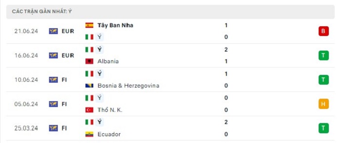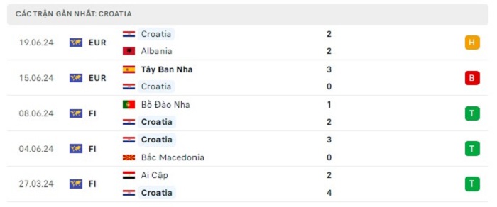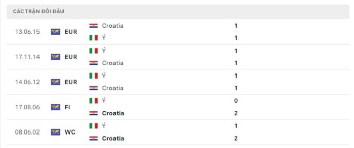 Phong độ gần đây Croatia vs Ý