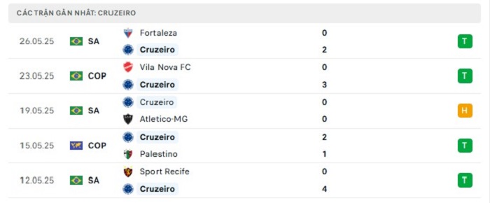 • Phong độ Cruzeiro