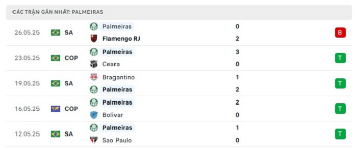 • Phong độ Palmeiras