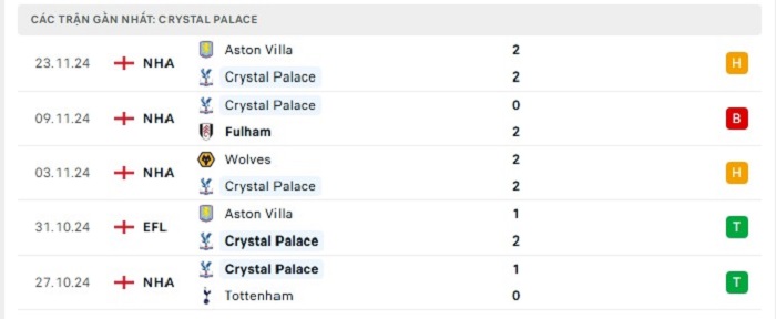- Phong độ Crystal Palace