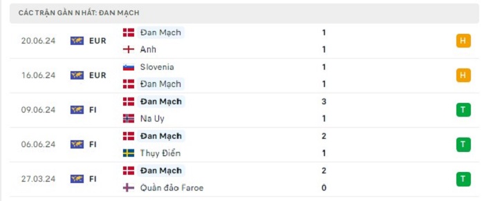 Phong độ gần đây Đan Mạch vs Serbia