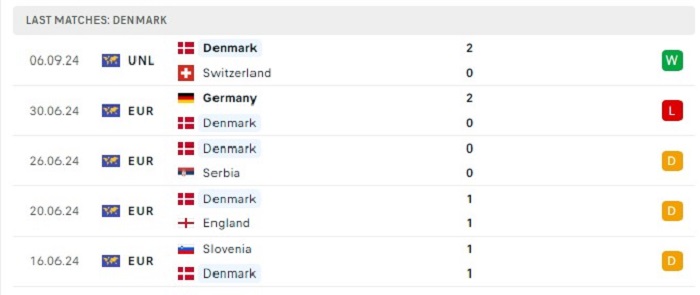 Phong độ gần đây Đan Mạch vs Serbia