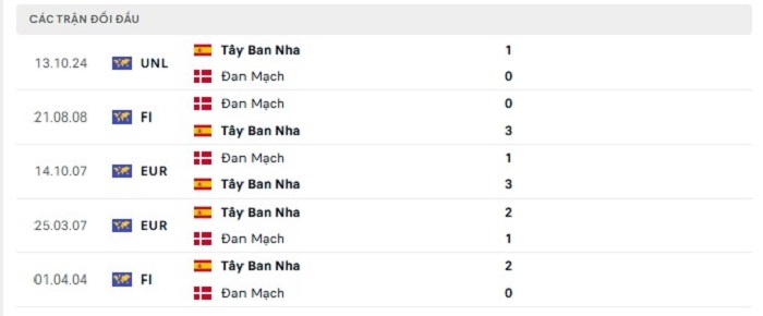 Bảng bóng đá trận đấu Đan Mạch vs Tây Ban Nha