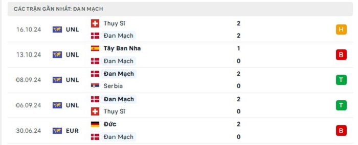 Phong độ gần đây Đan Mạch vs Tây Ban Nha
