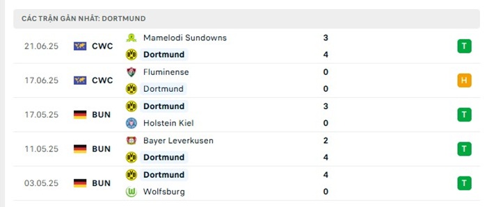 Phong độ gần đây Dortmund vs Ulsan