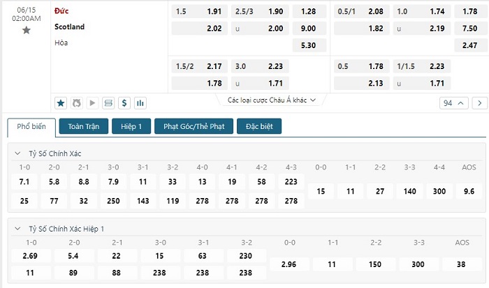 Bảng tỷ lệ kèo bóng đá trận đấu Đức vs Scotland
