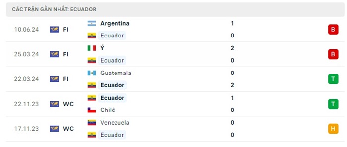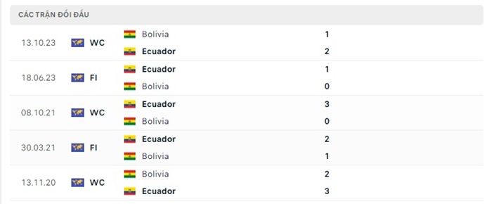 Phong độ gần đây Ecuador vs Bolivia