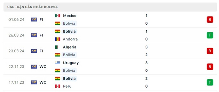 - Phong độ Bolivia