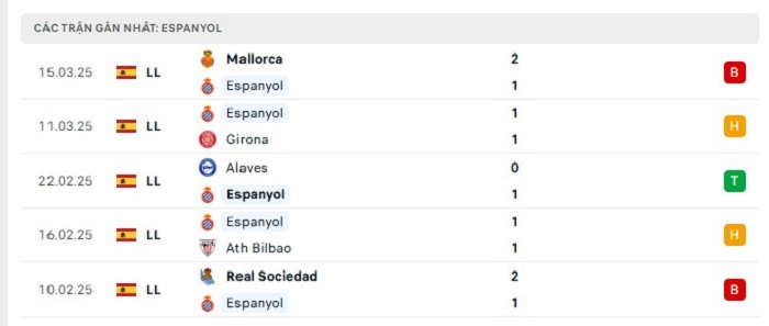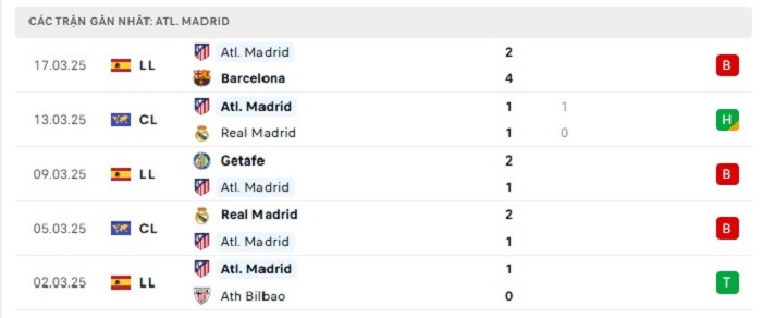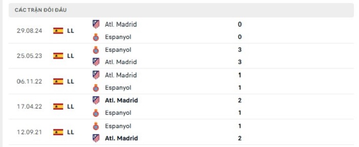 Phong độ gần đây Espanyol vs Atletico Madrid