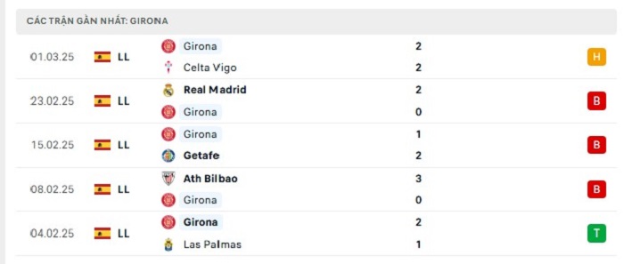 • Phong độ Girona