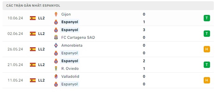 Phong độ gần đây Espanyol vs Sporting Gijon