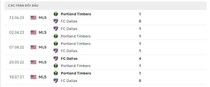 Phong độ gần đây FC Dallas vs Portland Timbers
