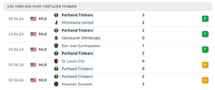 - Phong độ Portland Timbers