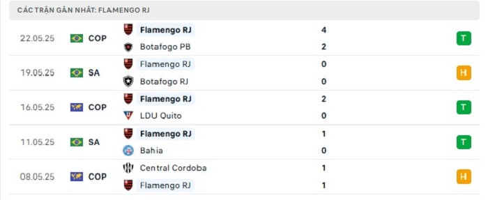 Phong độ gần đây Flamengo vs Deportivo Tachira