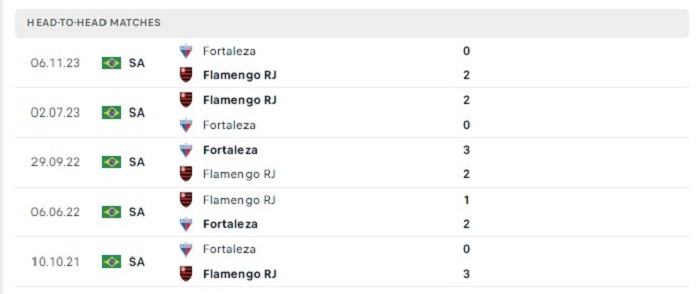 Trong 2 lần gặp nhau gần đây của hai đội tỷ số trận đấu đều đã khép lại với kết quả 2-0 thuộc về Flamengo, lần gặp nhau sắp tới cũng sẽ không phải ngoại lệ kết quả tỷ số có thể lặp lại khi Fortaleza mặc dù sở hữu hàng thủ thi đấu không tệ nhưng họ cũng khó có thể ngăn cản được sức mạnh của Flamengo, chính vì vậy mà trận đấu sắp tới cũng sẽ khó có thể kỳ vọng vào một trận đấu bùng nổ về mặt tỷ số của cả hai đội .