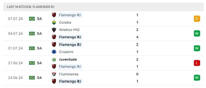 Phong độ gần đây Flamengo vs Fortaleza