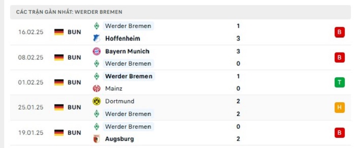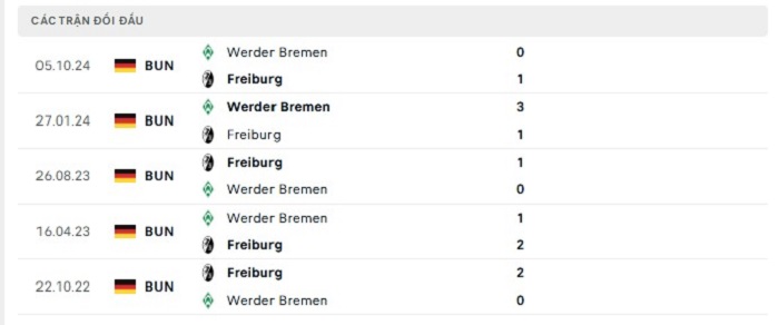 Bảng bóng đá trận đấu Freiburg vs Werder Bremen