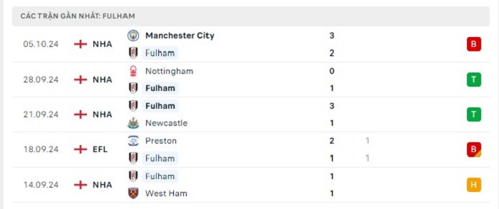 - Phong độ Fulham