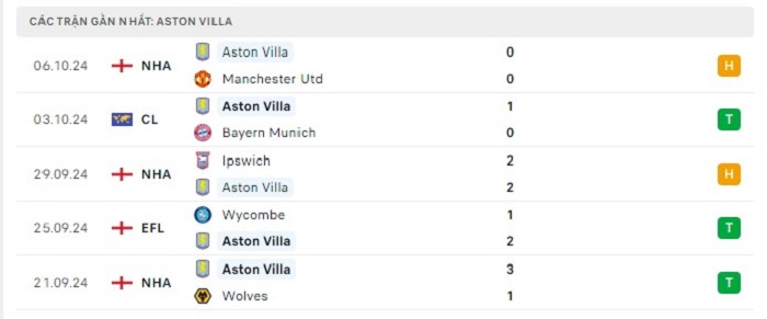 - Phong độ Aston Villa