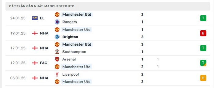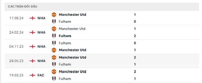 Phong độ gần đây Fulham vs Manchester United