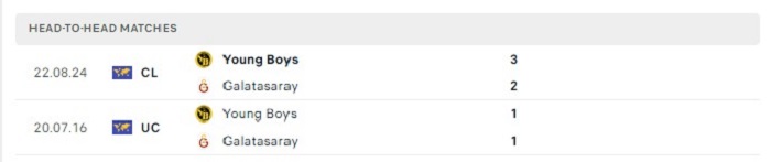 Trước khi phải nhận thất bại 2-3 trước Young Boys thì Galatasaray có được thành tích đối đầu không hề tồi trước đối thủ, điều này thấy được khi họ thắng 1 và hoà 1 theo mốc kèo châu Âu cả trận ở những lần gặp nhau trước. Trở lại với sân nhà ở trận lượt về này với Galatasaray mục tiêu và nhiệm vụ buộc phải thắng Young Boys để có thể góp mặt tại vòng bảng và nuôi tham vọng của mình. Do đó mà có thể đặt niềm tin vào Galatasaray theo mức kèo châu Âu của trận đấu này.