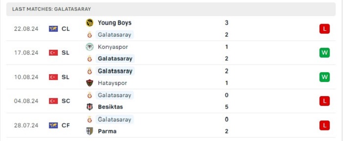 Trong trận đấu lượt đi vừa qua Galatasaray phải nhận thất bại 2-3 trên sân Young Boys. Tuy nhiên trận thua này vẫn chưa hoàn toàn chấp dứt cơ hội đi tiếp của đại diện bóng đá Thổ Nhĩ Kỳ bởi khoảng cách cũng chỉ là 1 bàn. Có thể thấy được cả Galatasaray và Young Boys ở trận lượt đi cũng đã cho thấy được lối chơi phóng thoáng và hiệu quả trong việc xuyên thủng hàng thủ đối phương. Chính bởi vậy mà trận đấu lượt về này cửa tài cũng là lựa chọn đáng được tin cậy.