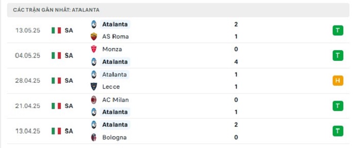 - Phong độ Atalanta