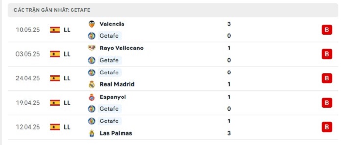 • Phong độ Getafe