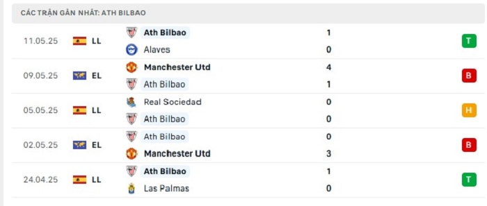 • Phong độ Atheltic Bilbao